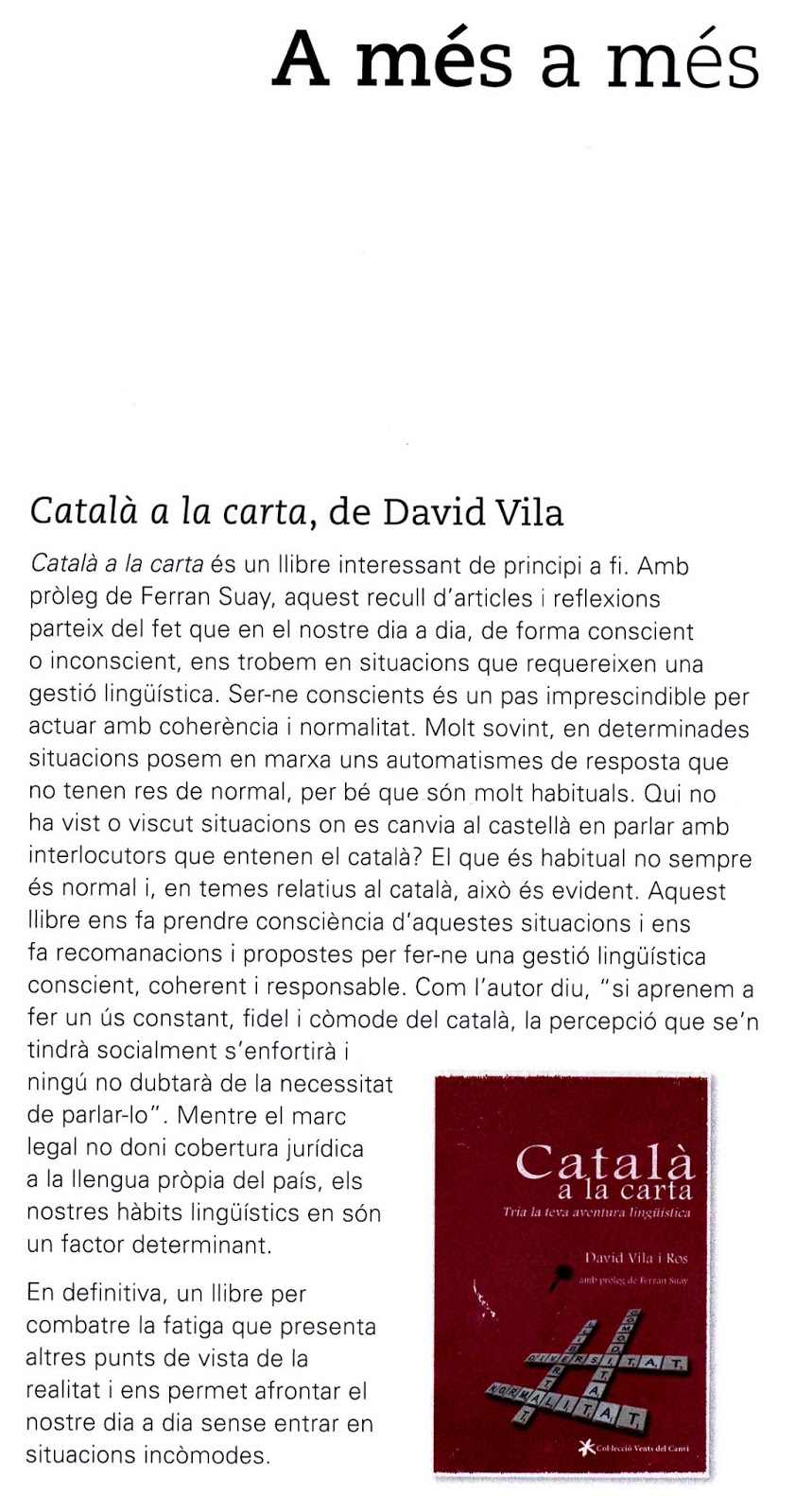 "Articles breus, fàcils de llegir, que ens donen idees a tort i a dret." (Pere Mayans al blog El pols de la llengua als Països Catalans)