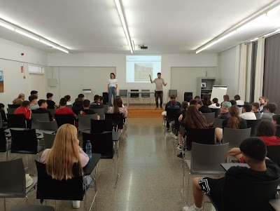 Divendres vam tornar a l'Institut l'Estatut de Rubí per compartir el taller Siguem llenguaferits!, aquest cop amb un parell de sessions per als alumnes de 3r d'ESO.